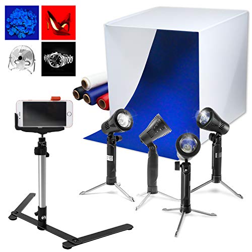 LimoStudio 24 x 24” Cubic White Photo Box Tent, LED Table Top Light with Stand Legs, Mini Camera Stand, Cellphone Clip, Photo Video Studio, AGG1071