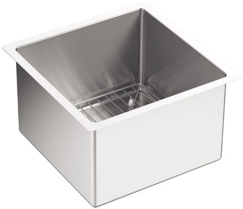 KOHLER K-5287-NA Strive 15 X 15-Inch Under-Mount Bar Sink with Basin Rack, Stainless Steel, 1-Pack
