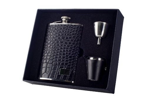 Visol "Gator" Crocodile Leather Deluxe Flask Gift Set, 8-Ounce, Black