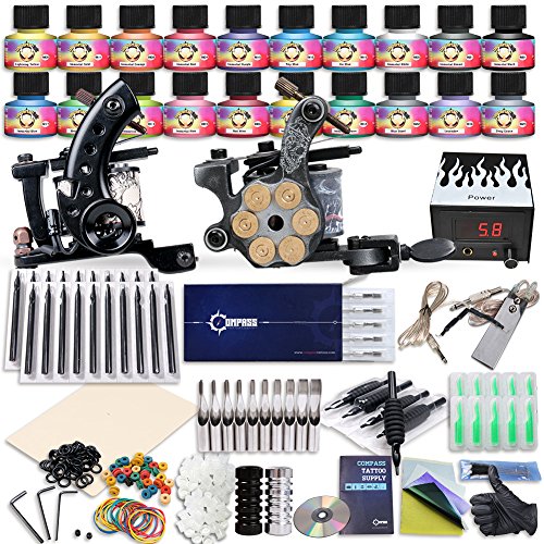 Dragonhawk Complete Tattoo Kit 2 Pro Machines Gun 20 Color Immortal Inks Power Supply 50 Needles Tips Grips D238-6GD