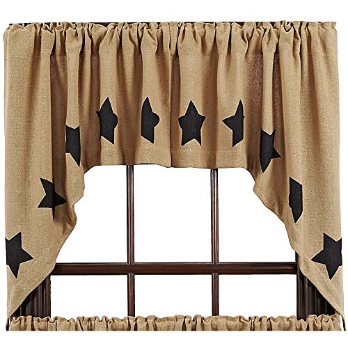 Burlap Natural Swag Black Stencil Stars 36x36"