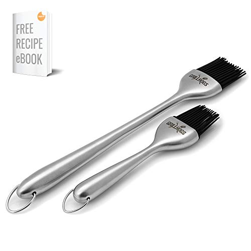 GRILLHOGS Sauce Basting Brush, Premium Stainless Steel Handles, Silicone Basting Brush, Dishwasher Safe Heat Resistant, Natural Long Lasting BBQ Bush, Set of Two