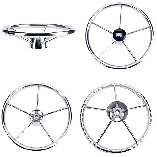 Amarine-made13-1/2 Inch 5-Spoke Destroyer Style Stainless Boat Steering Wheel