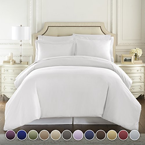 Hotel Luxury 3pc Duvet Cover Set-1500 Thread Count Egyptian Quality Ultra Silky Soft Top Quality Premium Bedding Collection -Queen Size White