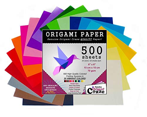 Origami Paper 500 Sheets, Premium Quality for Arts and Crafts, 6-inch Square Sheets, 20 Vivid Colors, Same Color on Both Sides, 100 Design E-Book Included (See back of the cover for download info)