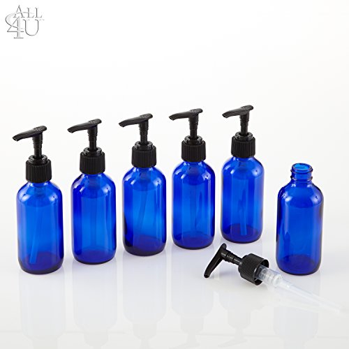 Pack of 6 - 4oz Cobalt Glass Boston Round Bottles with Pump Tops