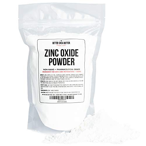 Zinc Oxide Powder 1 lb - Uncoated & Non-Nano - 100% Pure, Pharmaceutical Grade - for DIY Sunscreen, Lotion, UVA and UVB Protection - Ideal for Diaper Rash Creams - by Better Shea Butter