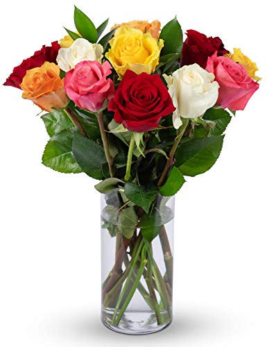 Benchmark Bouquets Dozen Rainbow Roses, With Vase (Fresh Cut Flowers)