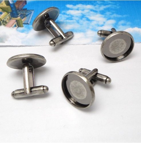 10PCS Antiqued Silver 16mm Round Blank Settings Cuff Links