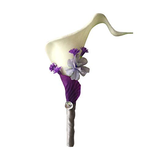 Boutonniere - Artificial Calla Lily Wrapped with Gray Ribbon with Purple Petal