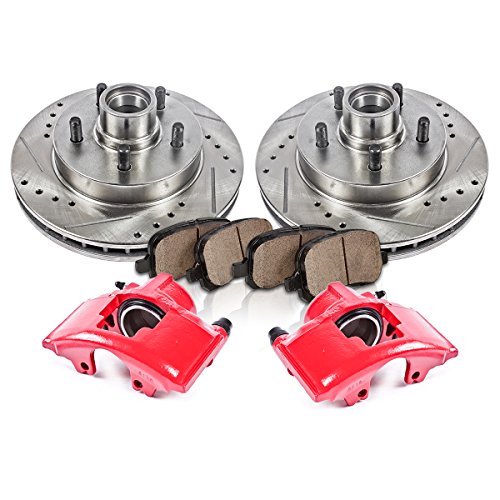 FRONT Powder Coated Red [2] Calipers + [2] Rotors + Quiet Low Dust [4] Ceramic Pads Performance Kit