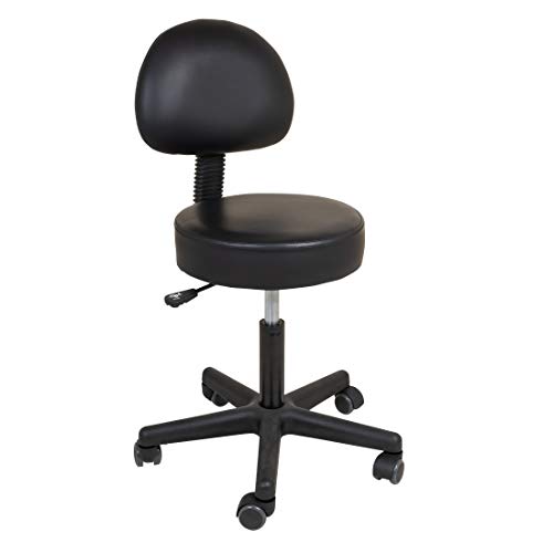 Roscoe Medical Rolling Stool with Back and Wheels - Round Adjustable Stool - for Work, Office, Desk, Salon, Drafting, Spa