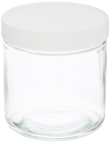 JG Finneran 9-183 Clear Borosilicate Glass Standard Short Straight Sided Wide Mouth Jar with White Polypropylene Closure and 0.015" PTFE Lined, 89-400mm Cap Size, 500mL Capacity (Pack of 12)