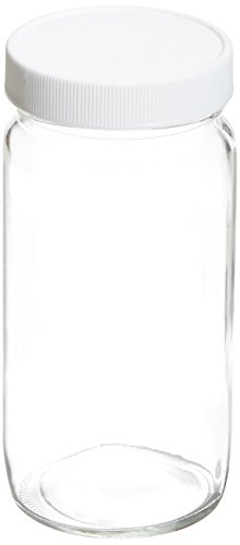 JG Finneran 9-191 Clear Borosilicate Glass Standard Tall Straight Sided Wide Mouth Jar with White Polypropylene Closure and 0.015" PTFE Lined, 58-400mm Cap Size, 250mL Capacity (Pack of 12)