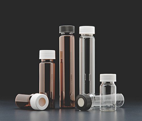 JG Finneran 9-107-2 Clear Borosilicate Glass Precleaned VOA Vial with White Polypropylene Open Top Closure and 0.100" PTFE/Silicone Septa, 24-414mm Cap Size, 20mL Capacity (Pack of 72)