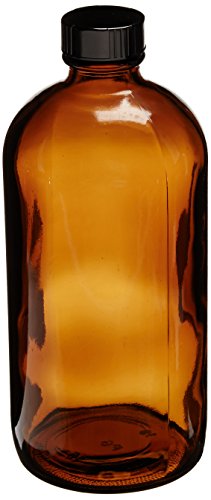 JG Finneran D0161-16 Amber Borosilicate Glass Standard Boston Round Bottle with Black Phenolic Closure, PE Cone Lined, 28-400mm Cap Size, 16oz Capacity (Pack of 12)