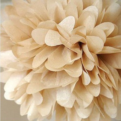 10pcs Khaki Tissue Hanging Paper Pom-poms, Hmxpls Flower Ball Wedding Party Outdoor Decoration Premium Tissue Paper Pom Pom Flowers Craft Kit Cream White