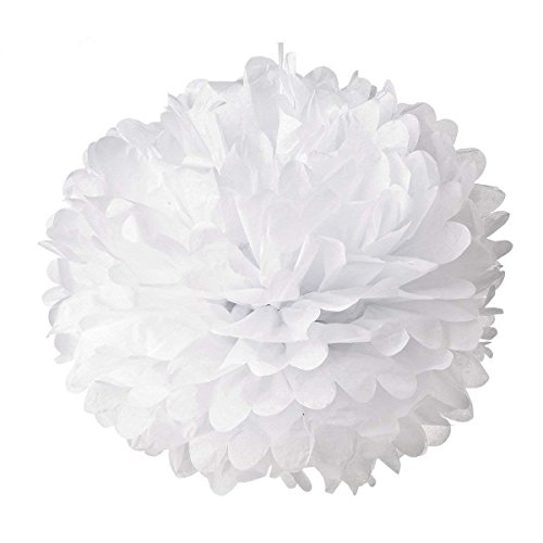 Hmxpls 10pcs White Tissue Hanging Paper Pom-poms, Flower Ball Wedding Party Outdoor Decoration Premium Tissue Paper Pom Pom Flowers Craft Kit