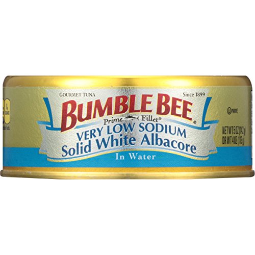 BUMBLE BEE Prime Fillet Solid White Albacore Tuna in Water, Very Low Sodium, Canned Tuna Fish, High Protein Food, 5oz Can (Pack of 12)