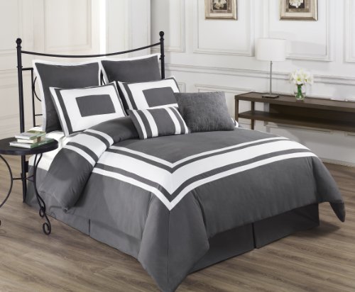 Cozy Beddings Lux Decor Collection 8-Piece Comforter Set with White Stripes, Queen, Grey