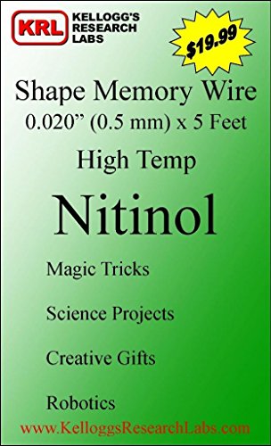Kellogg's Research Labs, High Temp 180°F (80°C), 0.020" (0.5mm) Shape Memory Nitinol Wire, 5 feet