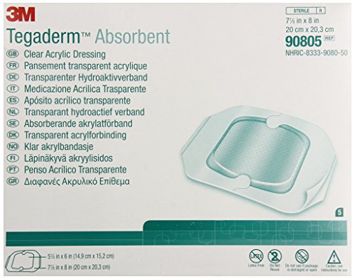3M Tegaderm Absorbent Clear Acrylic Dressing, Large Square 90805, 5 Pads