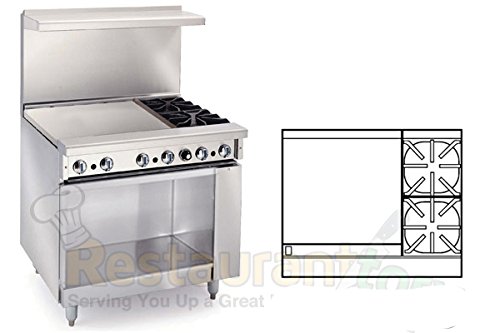 Imperial Commercial Restaurant Range 36" 2 Burners 24" Griddle Cabinet Base Nat Gas Ir-2-G24-Xb-N
