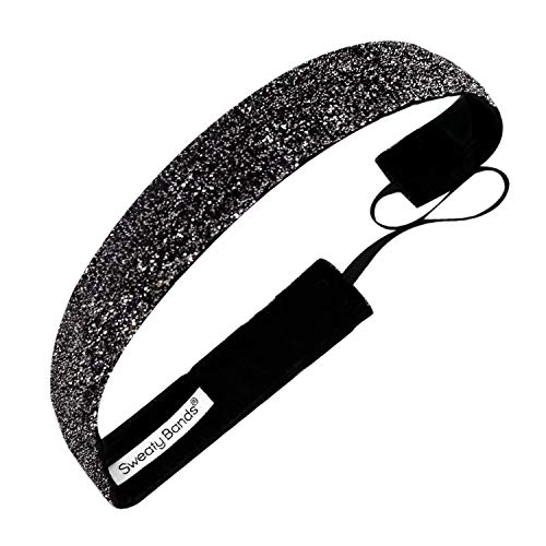 Sweaty Bands Womens Girls Headband - Non-Slip Velvet-Lined Glitter Hairband - Viva Diva Gunmetal 1-Inch