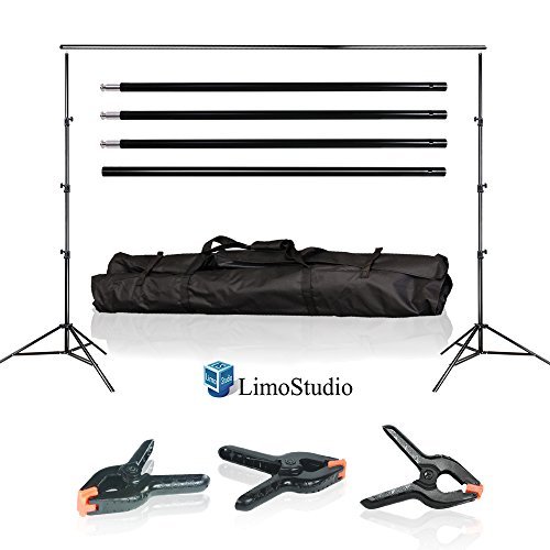LimoStudio Photo Video Studio 10Ft Adjustable Muslin Background Backdrop Support System Stand with 3pcs Backdrop Support Spring Clamp, AGG1114V2