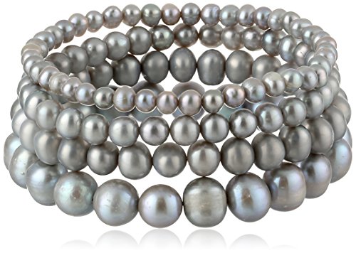 Set of 4 Multi-Grey Dyed Freshwater Cultured Pearl Stretch Bracelets, 7.5"