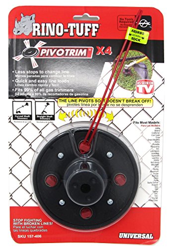 Rino Tuff 70266 Pivotrim X4 Pivoting Trimmer Head for Curved and Straight Shaft Gas .095” String Trimmers w/ 6 Included Pivoting Lines and Adaptor Kit