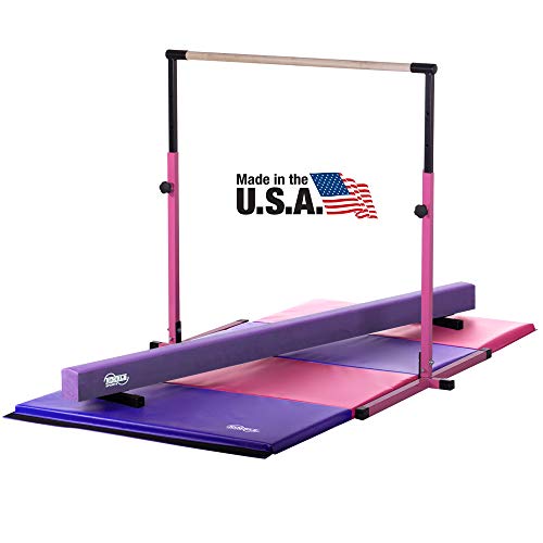 Little Gym - Adjustable Horizontal Bar - Purple Low Balance Beam - Pink/Purple Gymnastics Folding Mat