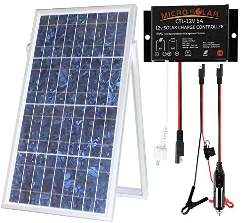 MicroSolar - 30w Solar Charger Kit // Plug & Play// IP68 WATERPROOF Solar Charge Contoller - 18 Ft Cable - Optional 16 ft extension cable // Cigarette Plug with Fuse & Alligator Clips Cable