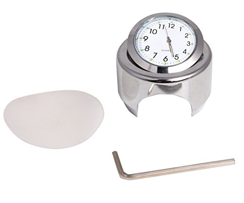 TMS 7/8" 1" Motorcycle Handlebar Chrome White Dial Clock for Yamaha Kawasaki Honda Suzuki Harley Davidson
