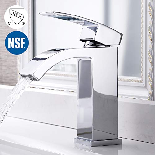 KES Bathroom Waterfall Faucet Single Handle One Hole Vanity Sink Faucet cUPC NSF Certified Lead Free Brass Polished Chrome, L3109ALF-CH