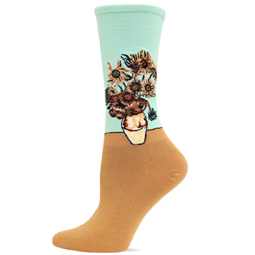 Hot Sox Women's Artist Series Crew Socks | Sunflowers, Spearmint, Shoe Size: 4-10