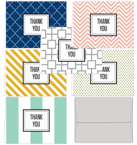 Modern Thank You - 36 Thank You Cards - 6 Designs - Blank Cards - Gray Envelopes Included
