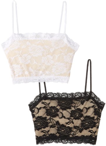 Pure Style Girlfriends Camiflage 2-Pack Lined Stretch Lace Half Camisole, Black/Nude, Medium