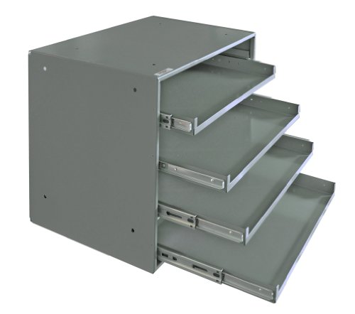Durham 310B-95 Heavy Duty Prime Cold-Rolled Steel Triple Track Bearing Slide Rack, 4 Compartments, 12-1/2" Length x 20" Width x 15" Height, Gray Powder Coat Finish