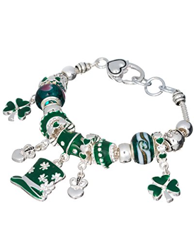 Jewelry Nexus Irish Theme St.Patricks Day Clover Green Multi Bead Charm Bracelet