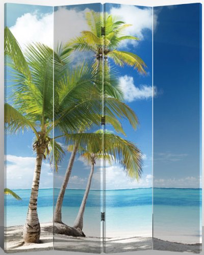 Legacy Deocr 4-panel Canvas Room Screen Divider Double - Sided Virgin Islands Beach Design