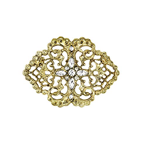 Downton Abbey "Gilded Age Boxed" Belle Epoch Swirl Filigree Pave Crystal Cluster Bar Pin