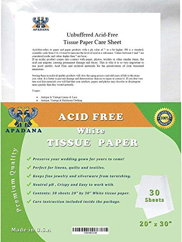 Apadana Acid Free Unbuffered White Tissue Paper 30 Sheets 20 X 30 Inches