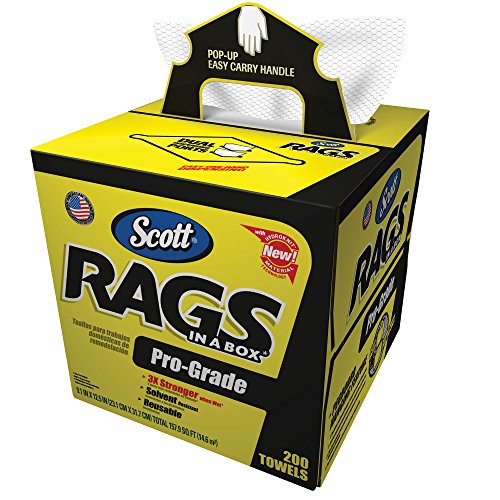 Scott Pro Grade Rags In A Box (39364), Shop Towels for Solvents & Heavy-Duty Jobs, White, 200 Wipes / POP-UP Box