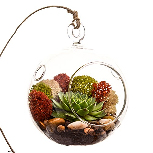 Bliss Gardens Succulent Terrarium Kit with Moss and River Rocks - 4" Round Glass