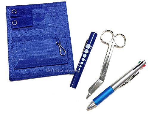 EMI Nurse Pocket Blue Organizer 4 Piece Kit - Pocket Organizer, Lister Bandage Scissor, Pupil Gauge penlight, and Chart Pen
