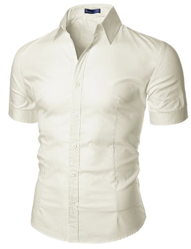 Doublju Mens Basic Wrinkle Free Slim Fit Short Sleeve Dress Shirt Ivory,(US XL)