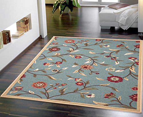Ottomanson Ottohome Collection Floral Garden Design Modern Area Rug with Non-Skid (Non-Slip) Rubber Backing, 3'3" W X 5' L, Sage Green