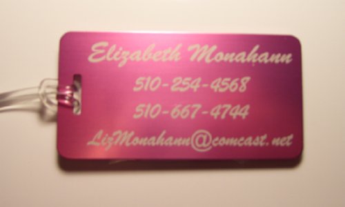 Luggage Tags (5) Metal Custom Engraved (Pink) Aluminum