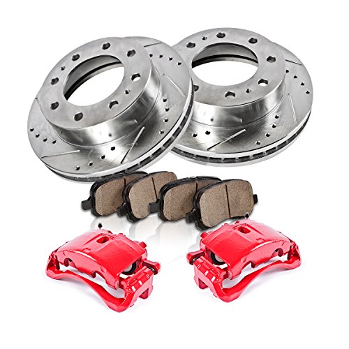 FRONT Powder Coated Red [2] Calipers + [2] Rotors + Quiet Low Dust [4] Ceramic Pads Performance Kit